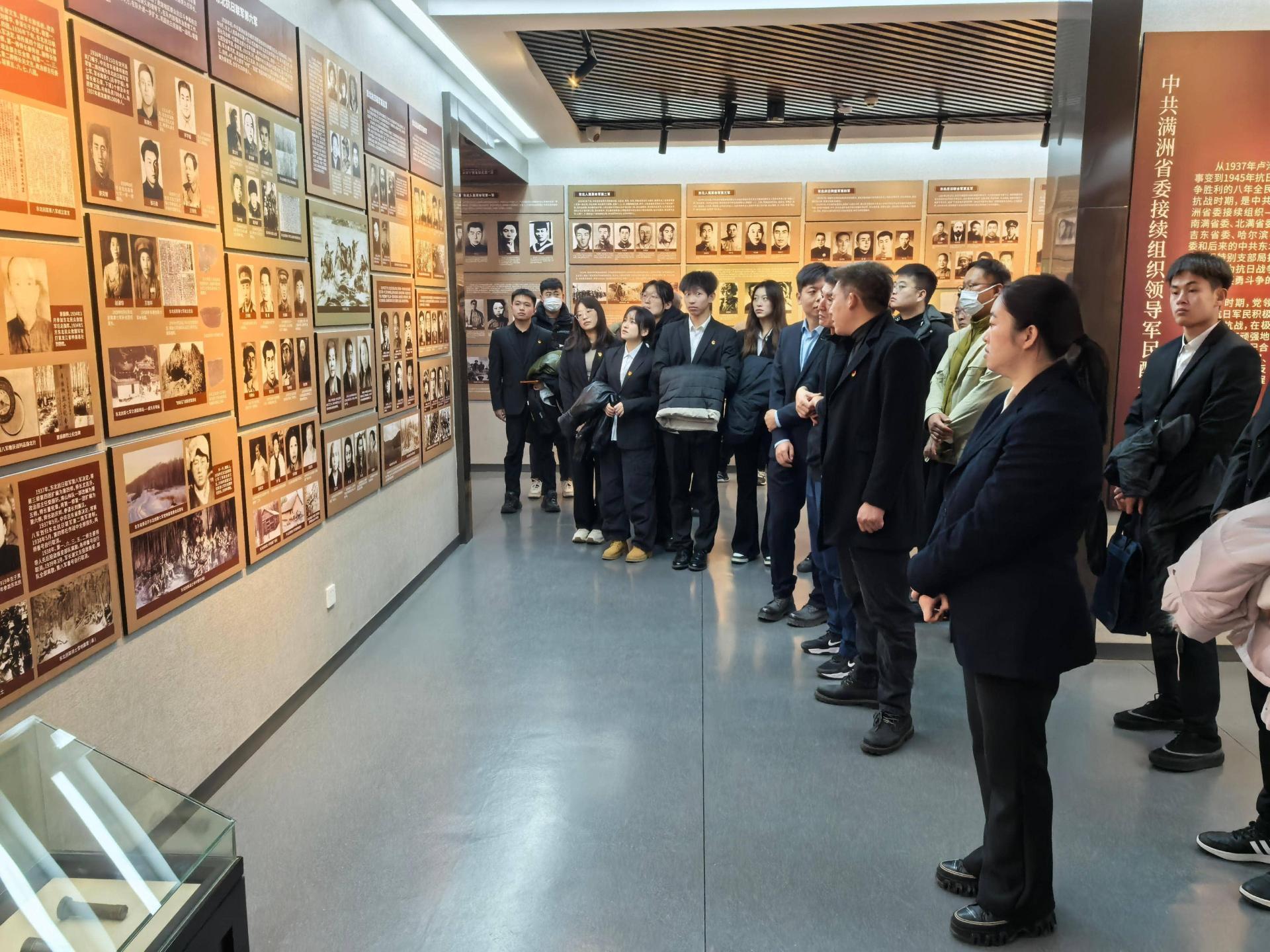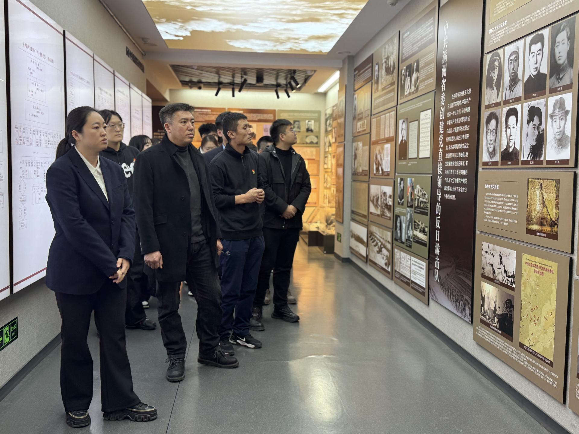 初冬微寒,难掩同志们的学习热情。在庄严肃穆的纪念馆内,大家怀着崇敬的心情,跟随讲解员的步伐,认真观看了展出的历史图片、珍贵文物和文献资料。通过一幅幅生动的历史画面、一件件饱经沧桑的革命实物,同志们深入了解了中共满洲省委在东北地区艰苦卓绝的革命斗争史,深切感悟了老一辈无产阶级革命家为了民族独立和人民解放,不畏艰险、不怕牺牲、英勇奋斗的伟大精神与坚定信念。那段风云激荡的岁月,革命先辈们用生命和热血铸就的崇高精神,深深触动了每一位在场学子的心灵。