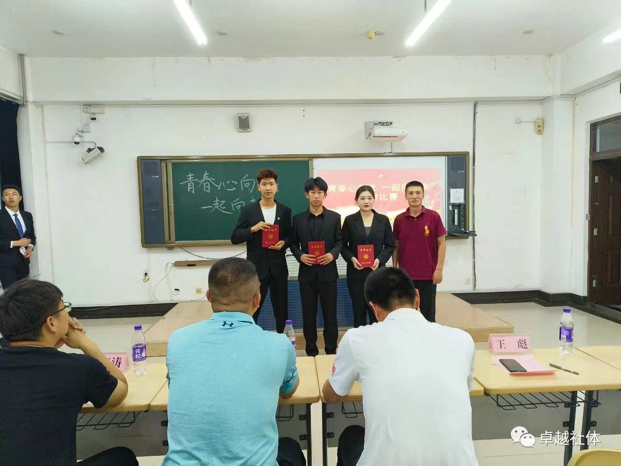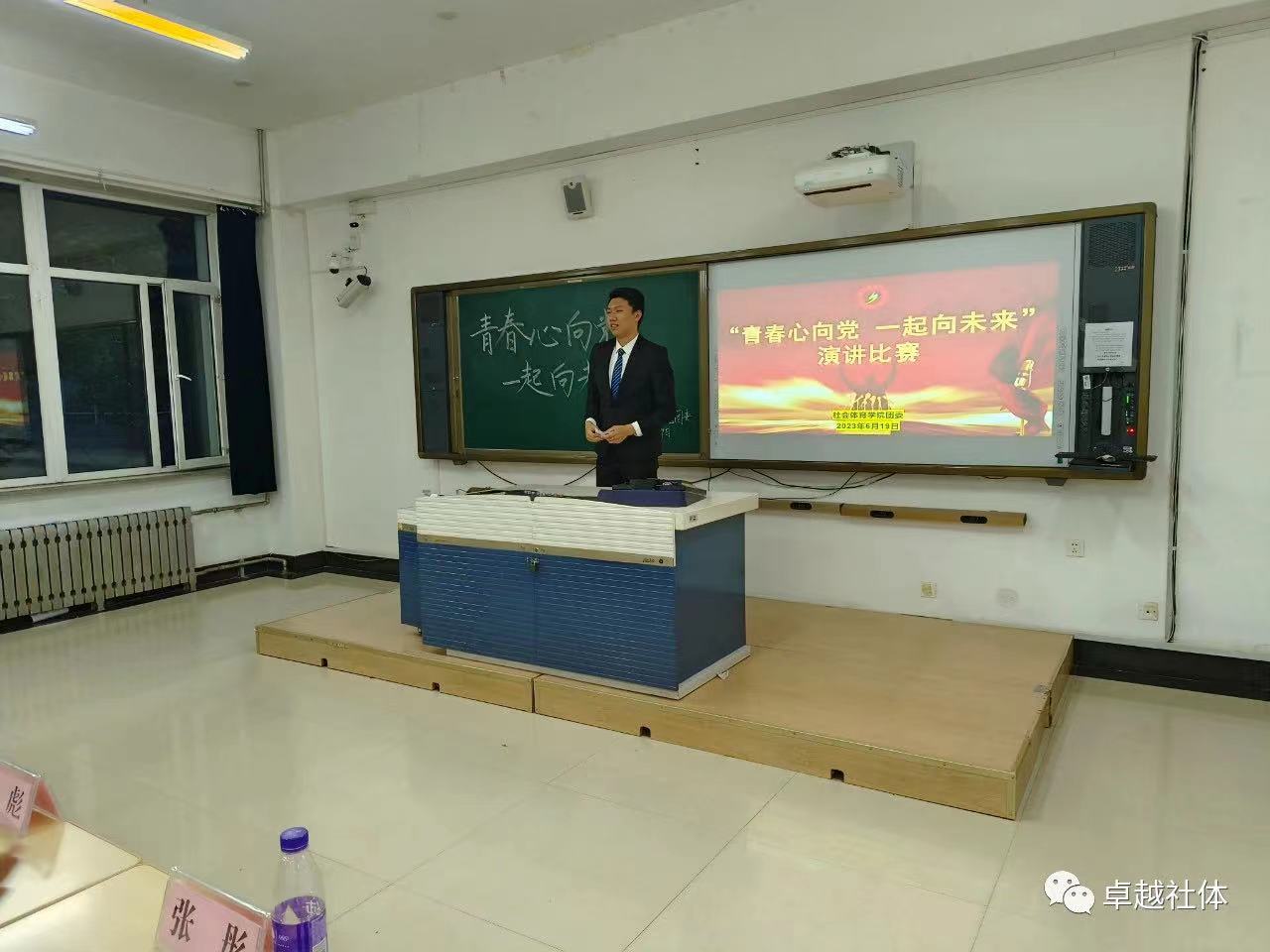 6月19日晚,由社会体育学院团委举办的“青春心向党,一起向未来”主题演讲比赛决赛在教学楼215教室举行。社会体育学院党总支副书记白绍闯、辅导员担任评委。