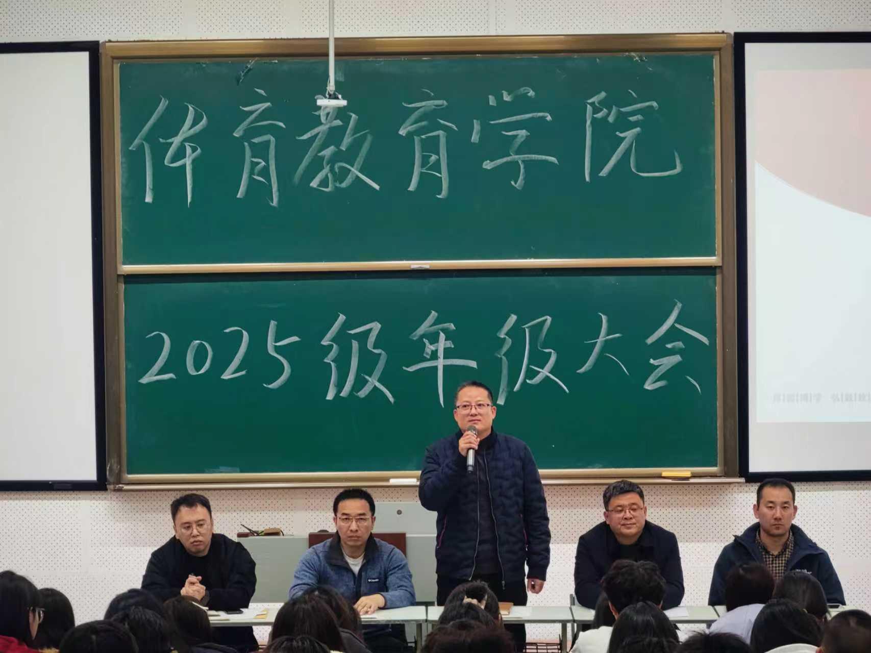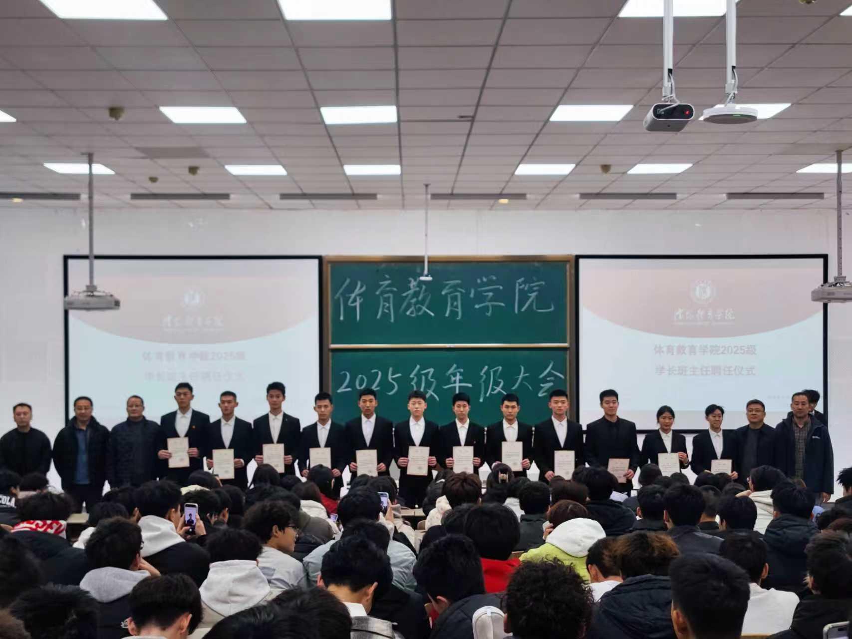 2025年11月9日,体育教育学院2025级学长班主任聘任会在教学楼112教室举行。党总支书记李丁皓、副院长夏忠梁、戴兴鸿2025级辅导员老师洪宗鹏、孙嘉旭以及全体学生参加。