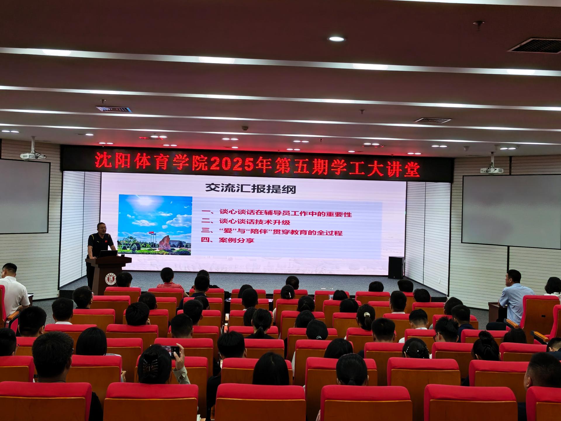 7月2日,党委学生工作部(学生处、武装部)组织开展2025年第五期“学工大讲堂”。本次活动由运动训练学院辅导员孙立名以“AI视域下谈心谈话如何赋能辅导员工作——“爱”与“陪伴”为主题进行交流和分享。全体学工干部参加本次活动,活动由党委学生工作部(学生处、武装部)学生管理科科长侯天鹏主持。
