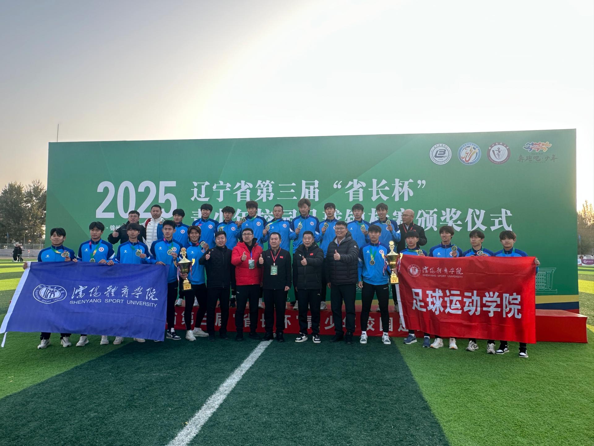 近日,由辽宁省教育厅主办,锦州医科大学、沈阳体育学院、辽宁师范大学联合承办的2025年辽宁省第三届“省长杯”青少年校园足球锦标赛在锦州医科大学落下帷幕,我院男、女高水平足球队发挥出色,成功包揽体育院系组男子、女子两项冠军。副省长吴春耕出席闭幕式,学校党委书记高向辉赴现场观赛并颁奖。